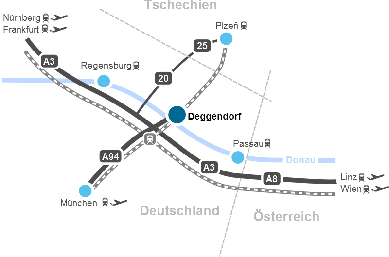 Deggendorf liegt am Autobahnkreuz A3/A94.